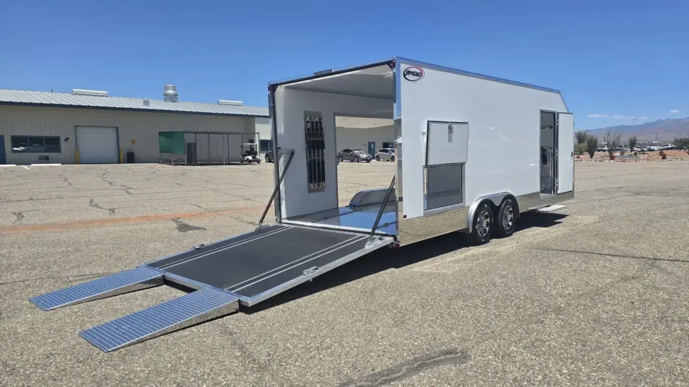 Your show car deserves a trailer that complements its appearance. JIMGLO’s composite construction ensures sleek, polished finishes inside and out, making your trailer as attractive as your car. Explore our Enclosed Aluminum Trailers in-stock to learn more.